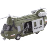 Realistični vojaški helikopter v merilu 1:16 bo razveselil vsakega malega pilota. Ob pritisku na gumb se prižge in predvaja avtentične zvoke. Napajanje zagotavljajo 3× AG13/LR44 baterije, ki so priložene v paketu. Idealno darilo za otroke od 3 let.
