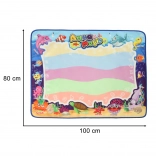 Odkrijte zabavno in čisto risanje z vodno podlogo Aqua Magic velikosti 100 × 80 cm. Otroci rišejo le z vodo – brez madežev, brez nereda in z neskončno zabavo. Podloga ob navlažitvi razkrije barve, priložene šablone in žigi pa spodbujajo domišljijo, fino motoriko in ustvarjalne sposobnosti. Idealno za skupno ustvarjanje celotne družine. Velika površina, risanje samo z vodo, žigi in šablone v paketu.