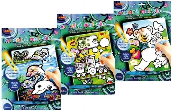 Čarobno slikanje z vodo je idealen način, kako zabavati vaše male umetnike. Potrebna je samo voda, in barvne slike se pojavijo, ko navlažite posebno belo plast. Po nekaj minutah sušenja se slika znova prekrije z belo barvo, tako da lahko slikanje neprestano ponavljate.
