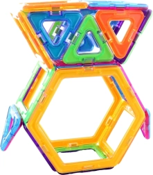 Preizkusite magnetno sestavljanko MagKiss, ki ponuja ne le zabavo, temveč tudi podporo razvoju in ustvarjalnosti vaših otrok. Komplet vsebuje 24 delov v oblikah trikotnikov, kvadratov in šesterokotnikov. Zaradi svoje preprostosti in vsestranskosti je sestavljanka primerna za sestavljanje kakršnihkoli domišljijskih oblik.