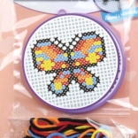 Preprost komplet za vezenje s križnim vbodom, v katerem je vse potrebno: plastična ploščica formata A5, predloga, igla in raznobarvne prejice. Odlična izbira za začetnike in kreativno ustvarjanje doma.