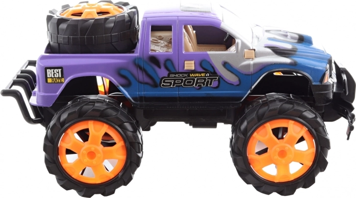 To terensko vozilo na vztrajnik združuje privlačen videz s preprostim upravljanjem: potegnite, spustite in opazujte, kako vozilo živahno steče naprej. Zahvaljujoč večjim kolesom in višjemu podvozju je pripravljeno na preproge, gladka tla in manjše ovire.