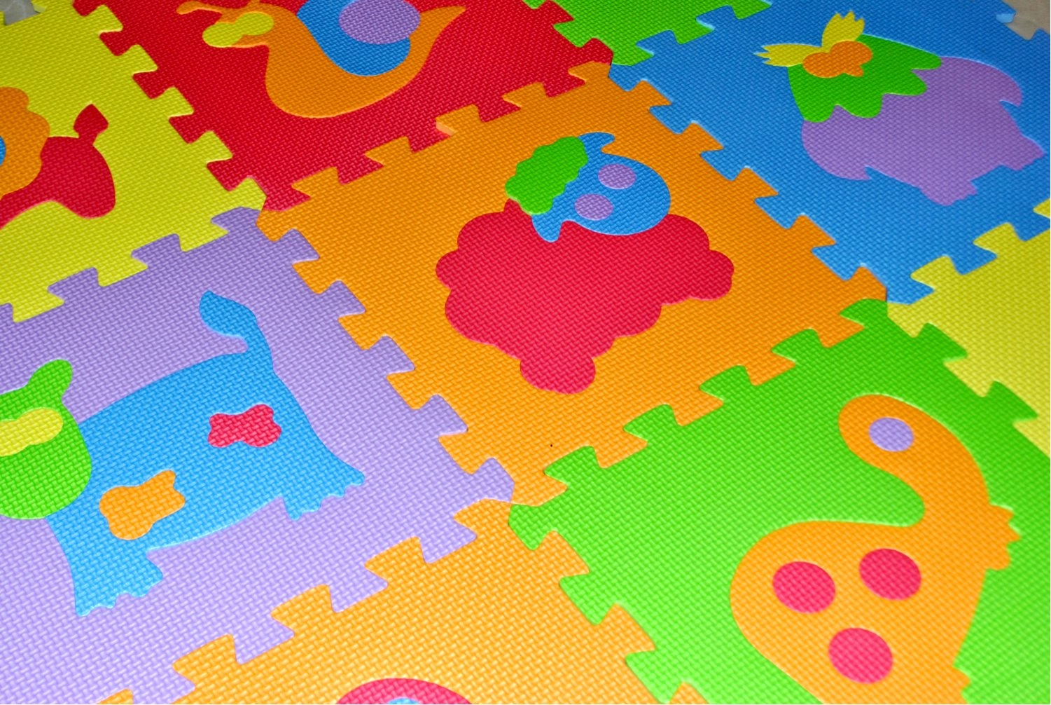 Zabavne in varne pene puzzle z živalicami za otroke od 3 let. Mehka pralna podloga duši hrup, izolira pred mrazom in zaradi rebraste površine ne drsi. Idealno kot igralna preproga za otroško sobo.