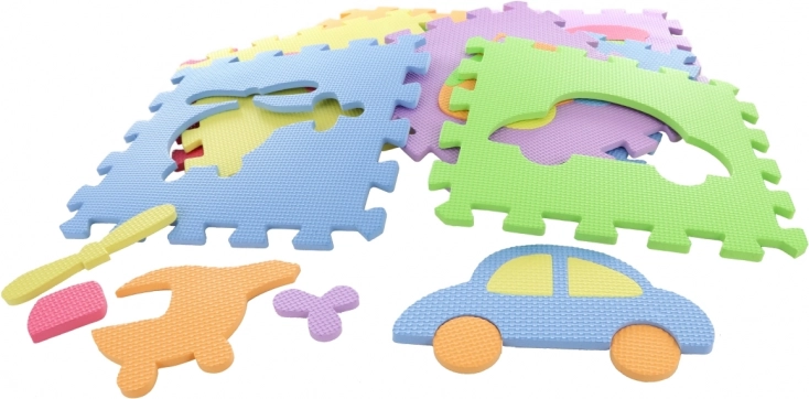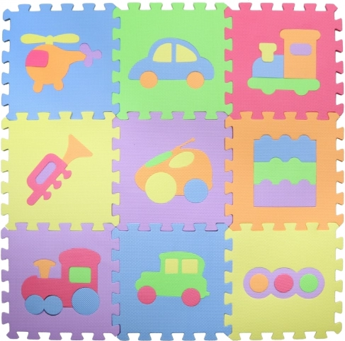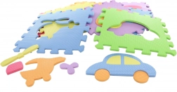 Ta komplet barvnih penastih sestavljank otrokom ponuja ne le udobno in varno podlogo, temveč tudi zabavno obliko učenja. Izrezljive oblike (prevozna sredstva in drugi predmeti) spodbujajo fino motoriko, prepoznavanje oblik in barv ter razvoj domišljije pri sestavljanju.