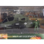 Uživajte v akcijskih dogodivščinah z vojaškim kompletom, ki vključuje helikopter, vojaka in različne dodatke. Idealno za otroke od 3 let dalje.