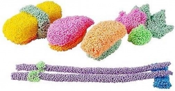 PlayFoam je lahka modelirna masa, sestavljena iz drobnih penastih kroglic, povezanih s posebnim vezivom. Zato se ne drobi, ne lepi na pohištvo ali preproge in obdrži obliko tudi pri večjih stvaritvah. Posamezne barve je mogoče ob spretni uporabi znova ločiti, masa pa se ne izsuši, zato zabava nikoli ne konča.