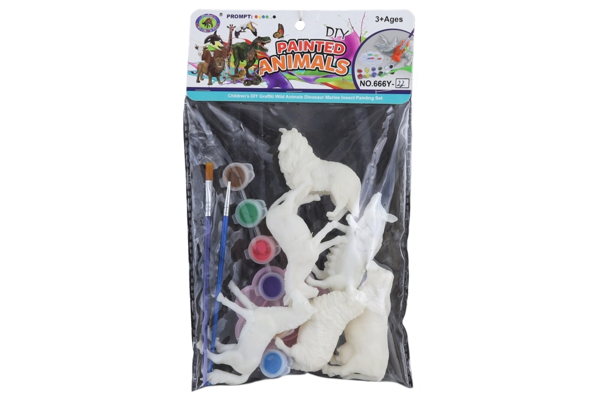Zabaven komplet za male umetnike: plastične figurice domačih živali za lastno barvanje. Del pakiranja je 6 barv, 2 čopiča in paleta za enostavno mešanje. Idealno za razvoj ustvarjalnosti in fine motorike. Primerno za otroke od 3 let.