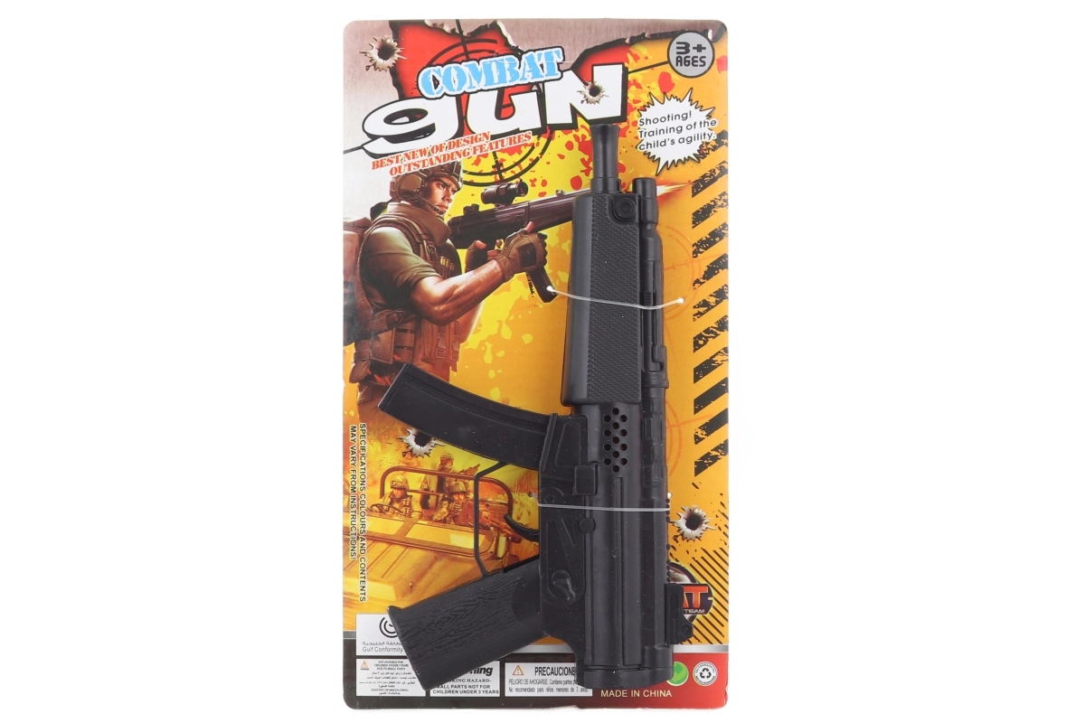 Ta lahka plastična puška razveseli vsakega malega policista ali vojaka. Ob pritisku na sprožilec oddaja mehanske ropotajoče zvoke, zato baterije niso potrebne – samo vzemi in se igraj. Idealna za igro doma in na prostem.