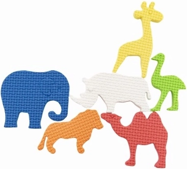 V setu najdete 6 priljubljenih prebivalcev živalskega vrta – slona, leva, kamelo, noja, nosoroga in žirafo. Material je lahek in prijeten na dotik, vodne nalepke se hitro sušijo in so idealne za večkratno igro.