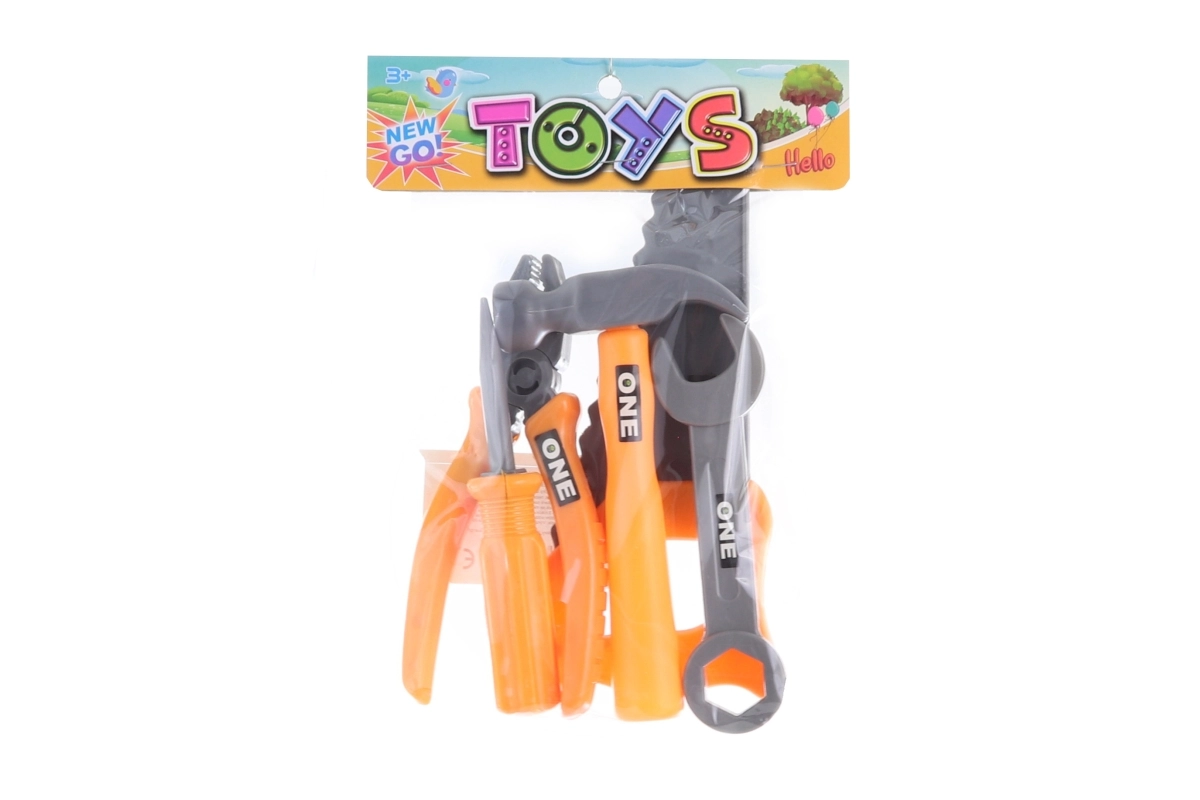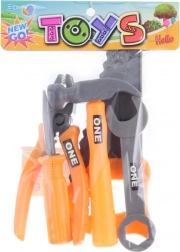 Komplet vključuje pet priljubljenih orodij – kladivo, ključ, izvijač, klešče in žagico – ki so prilagojena otroškim rokam. Pakiranje z merami približno 16 × 22 × 4 cm je enostavno za shranjevanje in prenašanje.