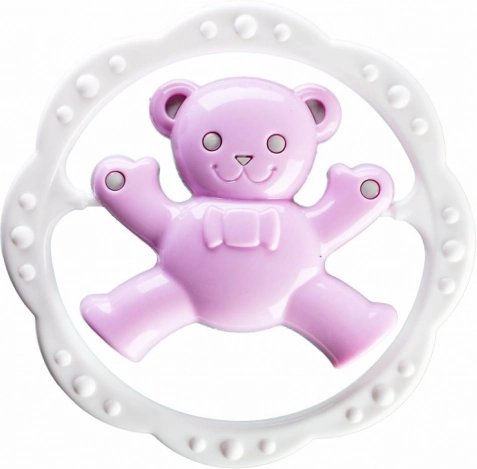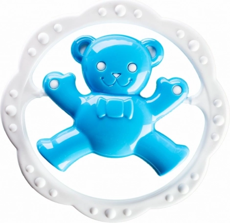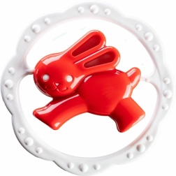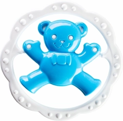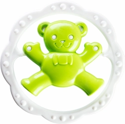 Teksturiran obroč nežno masira dlesni in pomaga umiriti dojenčka v obdobju rasti prvih zobkov.