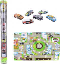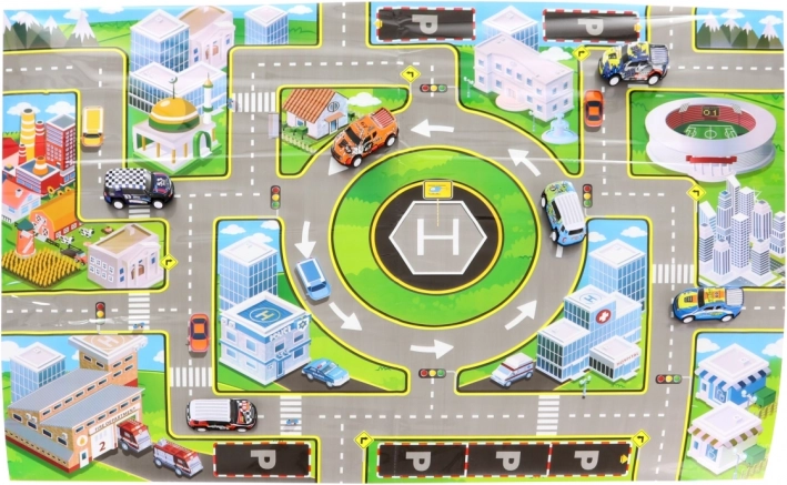 Odkrijte svet prometnih dogodivščin s kompletom, ki združuje vzdržljive kovinske avtomobilčke in praktično igralno preprogo. Otroci lahko razvijajo domišljijo, fino motoriko in koordinacijo, medtem ko se igrajo v svojem mestecu.