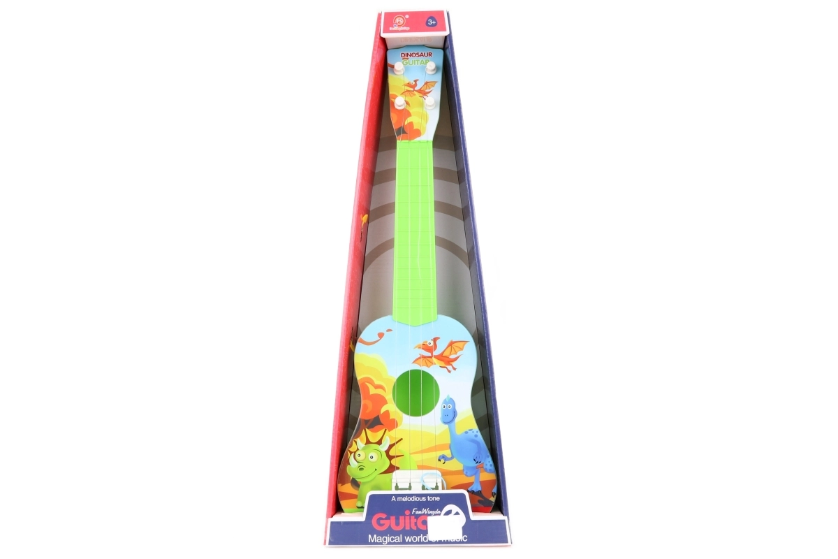 Ta otroška kitara z veselimi dinozavri je odličen prvi korak v svet glasbe. Zaradi kompaktnih mer približno 53 × 17 cm lepo leži v rokah, je enostavna za prenašanje in idealna za igranje doma ali na poti. Lahek, trpežen plast in varna izvedba so kot nalašč za majhne roke in začetnike.