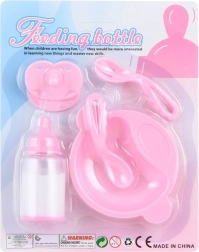 Set dodatkov za punčke, idealen za igre mame in hčerk, vsebuje stekleničko, dudko, krožniček in pribor. Popoln dodatek za vsako malo negovalko.