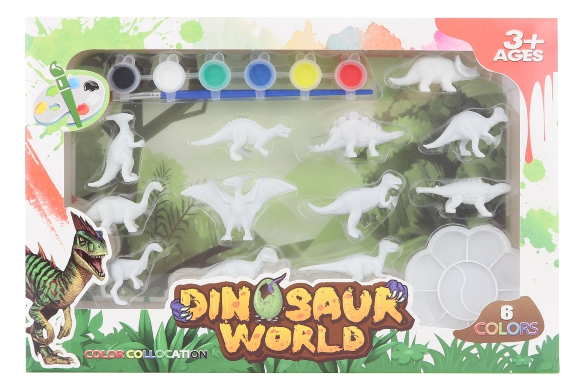 3D figurice dinozavrov, 6 barv, čopič, paleta