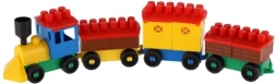 Lokomotiva in 3 enostavno priklopljivi vagoni za raznolike sestave in zabavno igro.