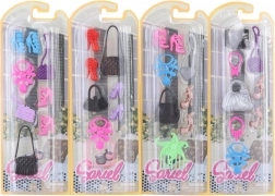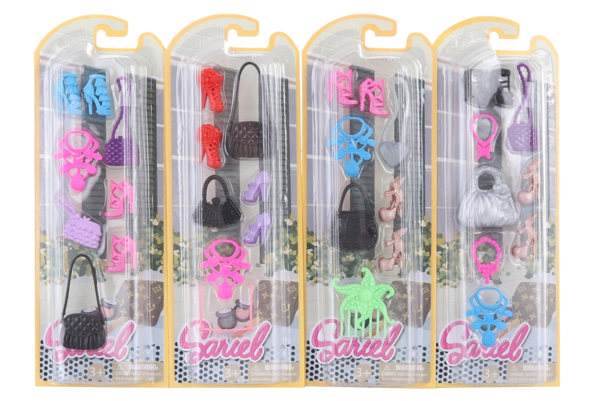 Obogatite garderobo svojih punčk z elegantnimi dodatki, ki se odlično podajo k najrazličnejšim opravám. Ta univerzalni komplet prinaša pisano izbiro čevljev, torbic in nakita, s katero bodo otroci uživali ure in ure stilskega oblačenja in iger vlog.