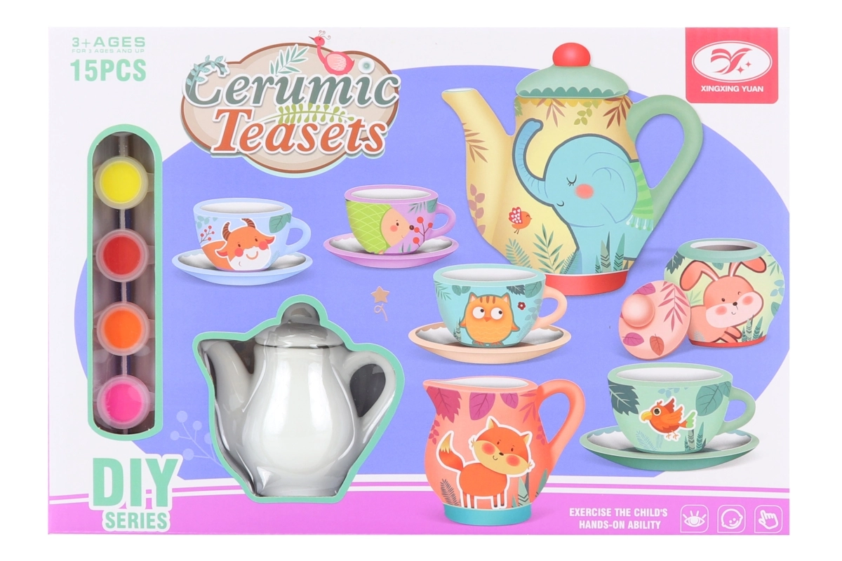 Naj otroci ustvarijo svoj prvi čajni servis povsem po lastni domišljiji. Slikarski čajni set vsebuje vse potrebno, da se lahko takoj lotijo dela – keramični deli, 6 barv in čopič. Odličen za skupno ustvarjanje ali kot darilo, ki razveseli in zabava.