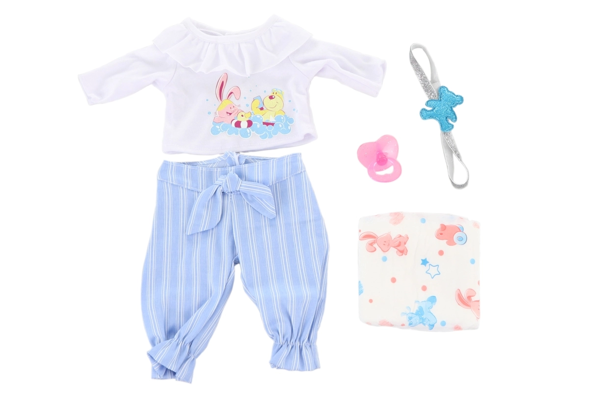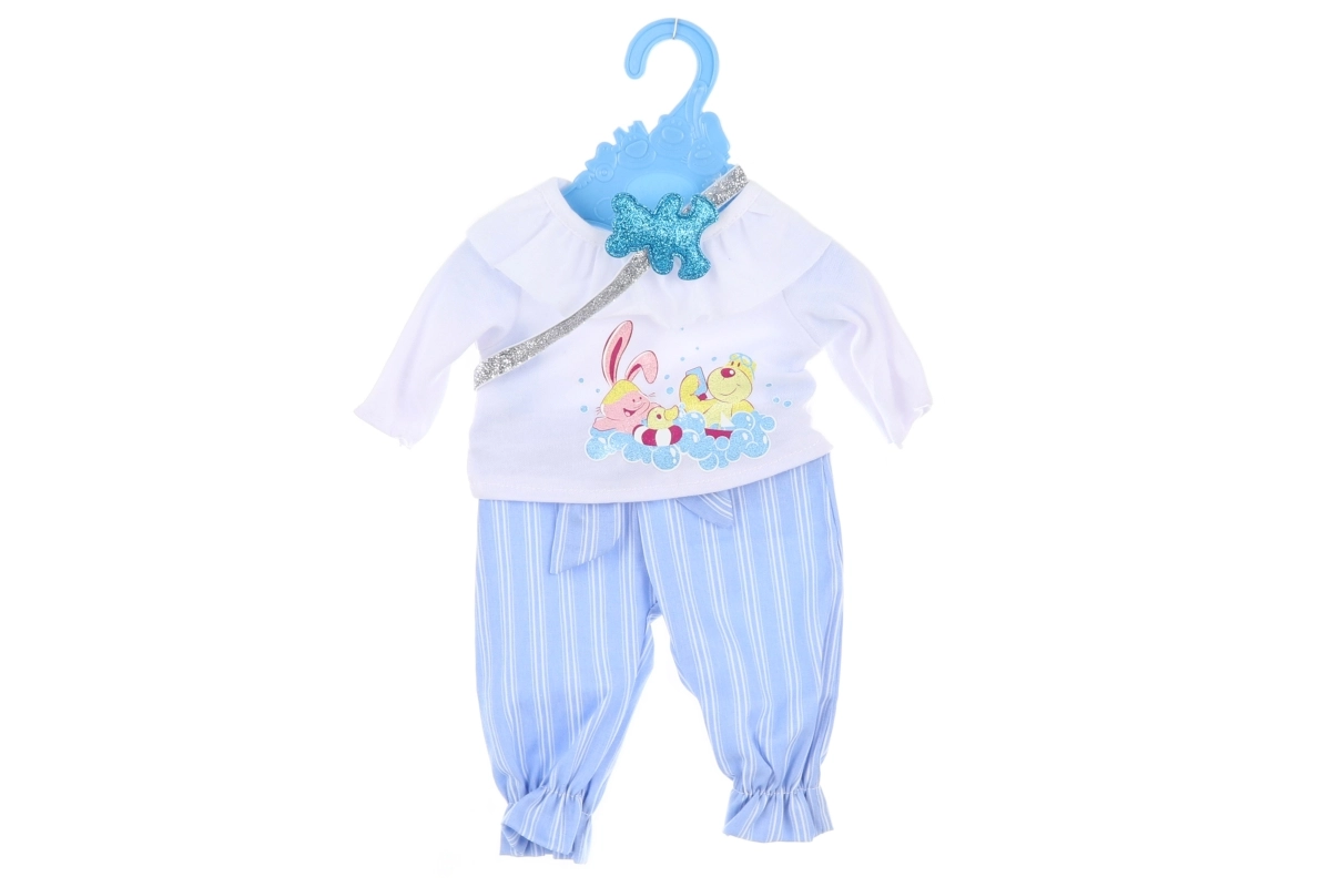 Privoščite svoji punčki novo opravo in otrokom neskončne možnosti igre. Oblačilo je zasnovano za punčke višine približno 45 cm in ustreza večini običajnih tipov punčk te velikosti. Zaradi premišljenega kroja je oblačenje preprosto tudi za mlajše otroke.