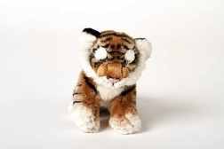 Plišasti rjav tiger velikosti približno 25 × 19 × 11 cm (brez repa). Dolžina repa približno 12 cm. Starost 0+