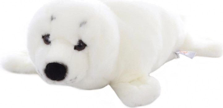 Plišasti tjulenj velikosti približno 44 × 14 × 27 cm. Starost 0+