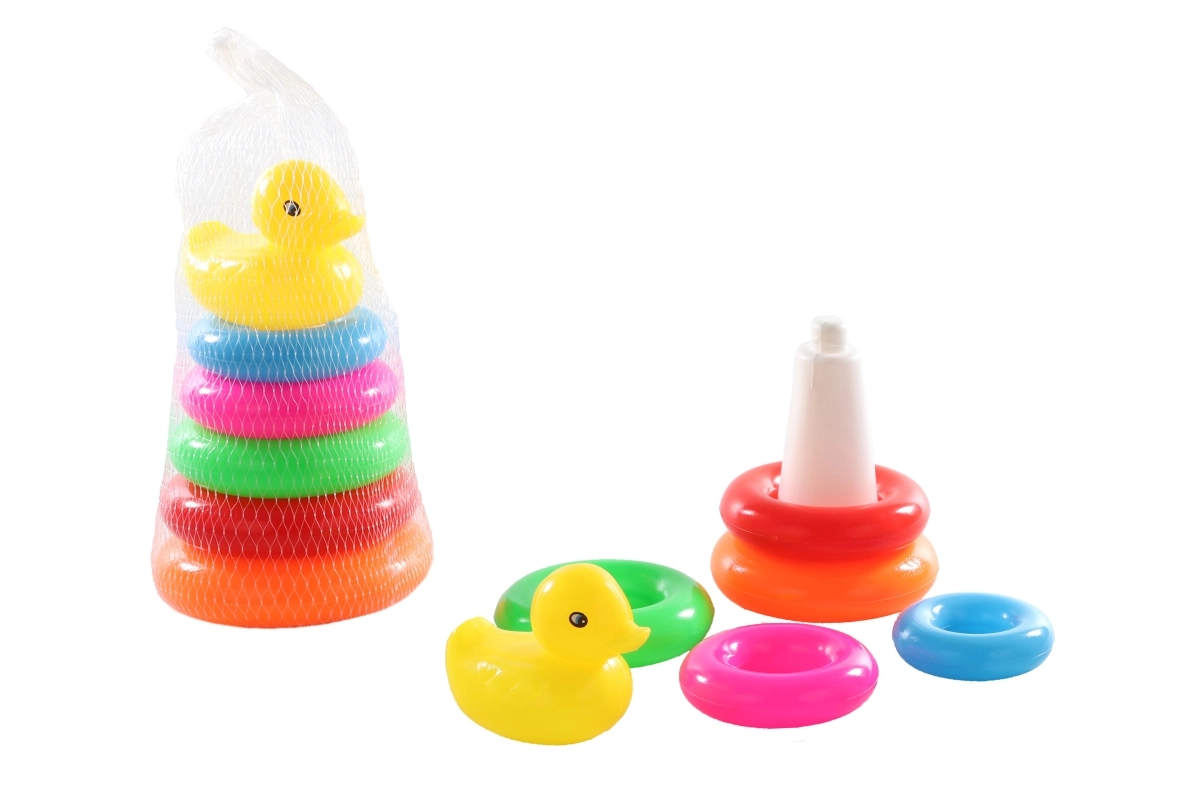 Plastična sestavljanka – stožec z račko. Material: plastika. Velikost približno 17 × 10 cm. Starost 12m+.