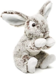 Ta siv plišasti zajček navdušuje z mehkim kožuščkom, belimi detajli na tačkah in ušeskih ter prijaznim izrazom. Sedeča izvedba naredi zajčka za ljubek dodatek v otroški sobi in odličnega spremljevalca na poti.