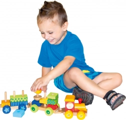 Multifunkcijski leseni vlak je ne le vlečna igrača, ampak tudi sestavljanka, ki otrokom omogoča razvijanje njihove kreativnosti. Del vlaka so trije podvozji in 18 različnih kock, ki jih je mogoče zlagati po domišljiji.