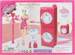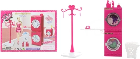Komplet Glorie pralnica otrokom prinaša zabavno in poučno igro gospodinjstva. Funkcionalni element v obliki pralnega stroja, ki se po pritisku na gumb resnično vrti, spodbuja domišljijo in fino motoriko. S sušilnim strojem, likalno desko in drugimi dodatki lahko otroci posnemajo celoten proces pranja in likanja oblačil svojih punčk.