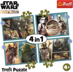 Odkrijte zabavo s sestavljanko 4v1, navdihnjeno s svetom STAR WARS: THE MANDALORIAN. Štiri samostojne sestavljanke z različnim številom koščkov (35, 48, 54, 70) prinašajo izziv za mlajše in starejše otroke. Vsak motiv meri 285 × 205 mm in bo razveselil vse male oboževalce legendarne sage. Izdelano na Poljskem iz okolju prijaznih materialov, primerno za otroke od 4 let.