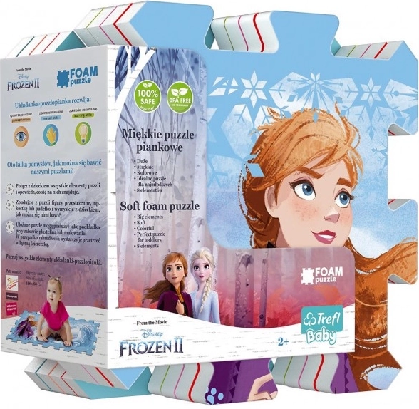 Penaste sestavljanke TREFL z motivi priljubljenih likov iz Ledenega kraljestva 2 otrokom prinašajo varno in spodbudno okolje za igro. Poseben penasti material, podoben debeli podlogi za na tla ali večplastnemu mirelonu, je prijeten na dotik, blaži udarce in nudi zaščito pri igri na tleh.