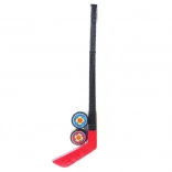 Dve plastični hokejski palici v mreži, dolžine približno 57 cm, vsaka v drugi barvi, ter 2 paka. Starost 3+