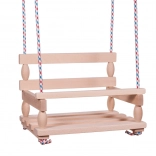 Zahvaljujoč nosilnosti 80 kg je gugalnica primerna za širši starostni razpon. Močne viseče vrvi omogočajo enostavno obešanje na tram, stojalo za gugalnico ali stropne kljuke. Naraven les se lepo poda tako v notranje kot zunanje prostore in ga je preprosto vzdrževati. Praktično pakiranje v vrečki olajša prevoz in shranjevanje.