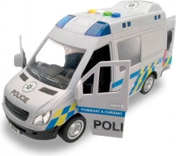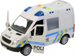 Ta policijski kombi bo navdušil vse otroke, ki imajo radi akcijske zgodbe in posredovanja. Vozilo vozi na vztrajnik, ima svetlobni modri signal z opozorilnimi lučmi in predvaja avtentična slovenska sporočila posadke in dispečerskega centra, kot pri pravi policijski akciji. Odpiralna vrata podpirajo realistično igro in razvoj domišljije.