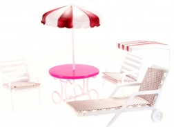 Ustvarite popoln poletni kotiček za svoje punčke z elegantnim kompletom Glorie. Zahvaljujoč realističnim dodatkom – ležalniku, stolčkom, mizici in sončniku – boste pripravili odličen prizor za počitek in druženje ob “limonadi”. Kakovostna plastična izdelava zagotavlja enostavno vzdrževanje in dolgo življenjsko dobo.