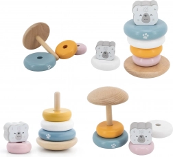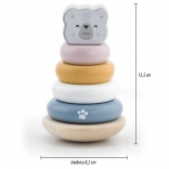 Lesena izobraževalna piramida s motivom polarnega medveda je idealna igračka za najmlajše. Ta piramida je opremljena s šestimi obročki različnih velikosti in barv, vključno z enim glavnim obročkom z medvedjo glavo. Zaradi trajne lesene zasnove je igračka ne le varna, ampak tudi trpežna.