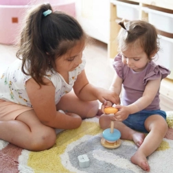 Igranje s piramido pomaga razvijati koordinacijo oko-roka, logično razmišljanje in kreativnost vaših otrok.