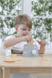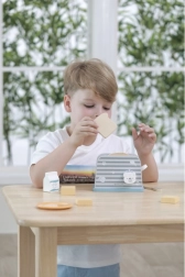 Lesen opekač kruha je zasnovan tako, da otrokom nudi varno in zabavno obliko igre na kuhinjo. Enostaven dizajn in trpežna struktura sta idealna za domišljijske igre in razvoj motoričnih spretnosti.