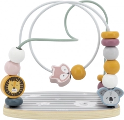 Odkrijte leseni kroglični labirint, ki spodbuja razvoj fine motorike in nudi izobraževalno izkušnjo za malčke. Ta kakovostna igrača je izdelana iz naravnega lesa in uporablja varna barvila, kar zagotavlja varnost in estetski vtis. Z barvnimi kroglicami in živalskimi oblikami, nanizanimi na vijugastih žičnih poteh, otroci krepijo koordinacijo in fino motoriko.