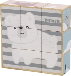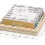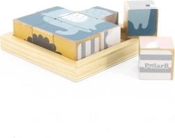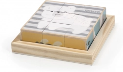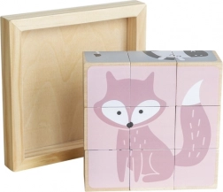 Odkrijte brezčasno leseno igračo, ki otroke zabava in uči. Iz 9 kock ustvarite skupaj 6 različnih motivov živalic – na primer medvedka, lisico, koalo, zebro ali ježa. Vsaka stran kocke pripada drugi sliki, zato si otroci urijo pozornost, potrpežljivost in prostorsko predstavljivost.