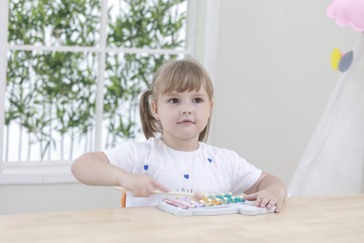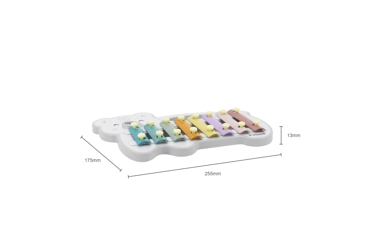 Trpežna konstrukcija, zaobljeni robovi in kompaktne mere zagotavljajo varno in udobno igranje tudi za najmlajše. Ksilofon je odlična izbira za razvoj glasbenega čuta, zbranosti in potrpežljivosti.