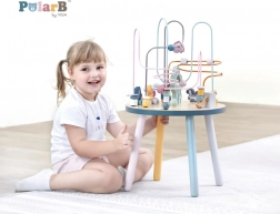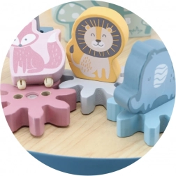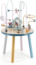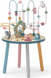 Labirint s kroglicami na stabilni leseni mizici otroke vabi k raziskovanju. Barvite oblike in simpatične živalice (medvedek, lisica, ježek) motivirajo k gibanju prstkov, natančnemu prijemanju in ustvarjanju lastnih zgodb. Idealna izbira za domači »montessori« slog učenja skozi igro, ki razvija potrpežljivost, zbranost in domišljijo.