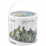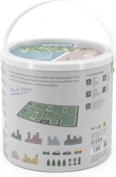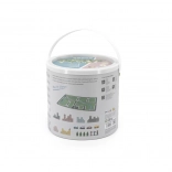 Trpežno vedro z ročajem olajša prenašanje in shranjevanje sestavljanke. Zaradi kompaktnih mer je igrača idealna tudi za na pot.