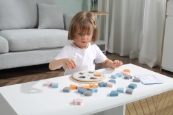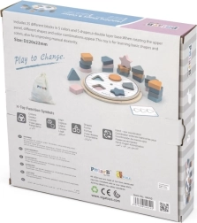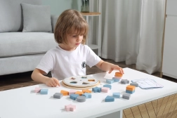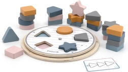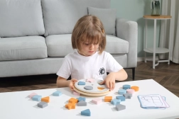 Odkrijte zabavno in izobraževalno igro, s katero si otroci naravno osvojijo prepoznavanje oblik in barv. Vrtljiva plošča omogoča spreminjanje barvnih vzorcev, zato ostaja igra vedno privlačna in raznolika. Kartice z vzorci vodijo otroke korak za korakom ter razvijajo njihovo logiko, osredotočenost in koordinacijo oko–roka.