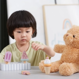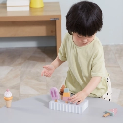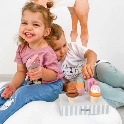 Pet različnih sladoledov otroke navdihuje za igre vlog, bogati besedni zaklad in krepi socialne veščine pri skupni zabavi.