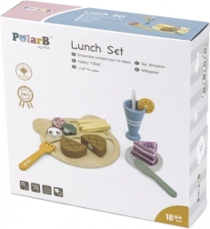 Lesena kosilna set POLARB od VIGA je pripravljena za postrežbo dobrot v slogu. Na krožniček si lahko otroci razporedijo steak, pomfrit, zelenjavo in sladico ter vse »popijejo« s pijačo s slamico. Realistični dodatki spodbujajo posnemanje odraslih ter razvijajo samostojnost in besedni zaklad.