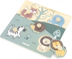 Lesene sestavljanke PolarB združujejo kakovostne materiale in premišljen dizajn za male raziskovalce. Vsak košček ima leseni gumb za lahek prijem z drobnimi prstki in natančno namestitev v pripadajoči izrez. Pod vsako obliko je na podlagi narisan motiv živali, ki otrokom pomaga in jih motivira k nadaljnjemu sestavljanju.