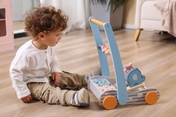 Interaktivna elementa v obliki lisice in slona, ki se med vožnjo gugata in oddajata zvok, spodbujata radovednost in razvijata slušno zaznavanje. Vesele barve in motivi živali pomagajo pri prepoznavanju barv in oblik, vožnja s hojnikom pa krepi grobo motoriko in koordinacijo.