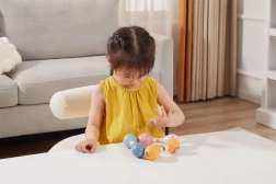 Premišljene mere 14,5 × 4,5 cm omogočajo varno in udobno držanje v majhnih rokicah ter podpirajo koordinacijo in ritem.