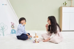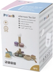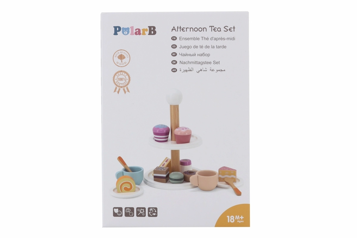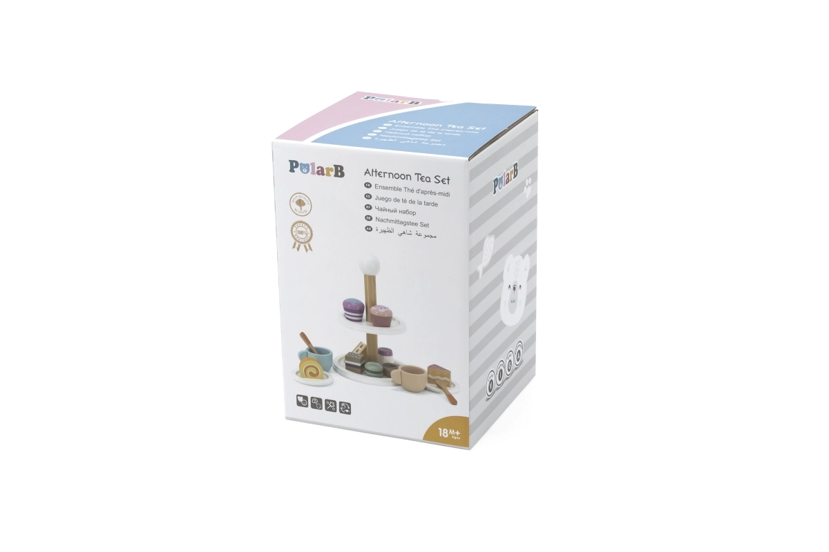 Igra čajnega popoldneva razvija komunikacijo, domišljijo in sodelovanje med otroki. Barvite tortice spodbujajo razvrščanje in štetje, skodelice in žličke pa podpirajo koordinacijo oko–roka in fino motoriko. Eleganten dizajn v nežnih barvah se lepo poda v vsak otroški sobici.